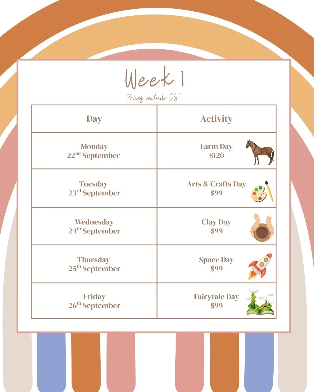 Our programs run from 9:00am - 3:00pm.